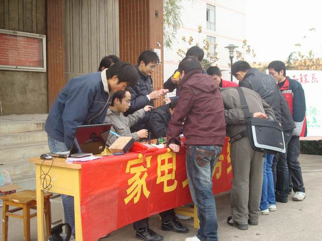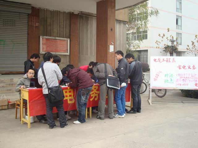 根据第八届院大学生课外学术科技节活动的安排, 12月5日,由电气工程系团总支主办、电子科技协会协办的家电义务维修活动在院学术报告厅旁举行。下午2:00,电子科技协会的同学就早早的摆好工作台,开始了近三个小时的维修活动。