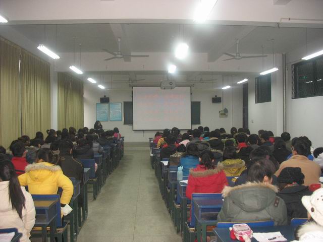 129号日下午,外语系在9J101召开了2010届毕业生就业动员会。会议由毕业班辅导员余本祺主持,系党总支副书记谈丽华、团总支书记李烨、辅导员李飞出席了本次动员会。