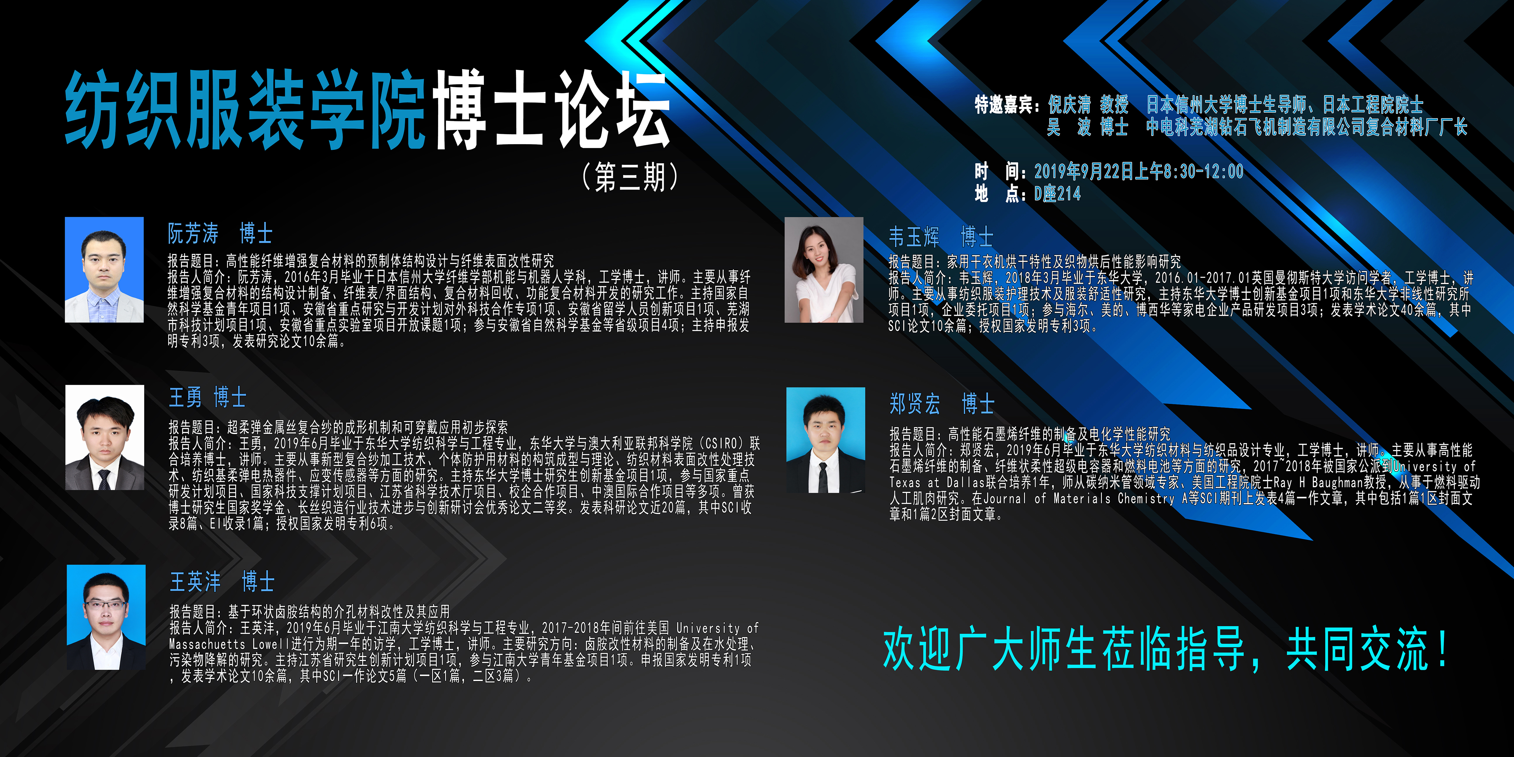 2019年第103场学术报告预告:纺织服装学院学术报告
