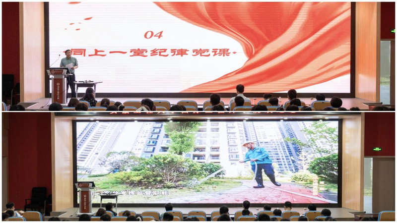 同听一堂纪律课。学院党委书记任家钱为全体党员上一堂纪律党课。希望党员们铭记党员身份、严守纪律规矩、勇担时代使命、落实组织责任,做追求卓越、心怀感恩、担当责任的新时代青年。同签一份承诺书。毕业生党员代表领读《文明离校承诺书》,全体毕业生党员郑重签字承诺,将纪律意识转化为实际行动。同观一部警示片。全体师生党员共同观看警示教育纪录片《反腐为了人民》第七集,以典型案例为镜,强化纪律意识,筑牢思想防线。