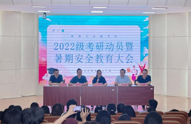 举办考研动员暨安全教育大会是数理与金融学院加强学风建设和学生教育管理的有效举措,帮助学生提高备考动力,切实提高暑期留校学生的安全意识与防范能力,学院将持续为全体留校学生提供学业指导和保障支持。