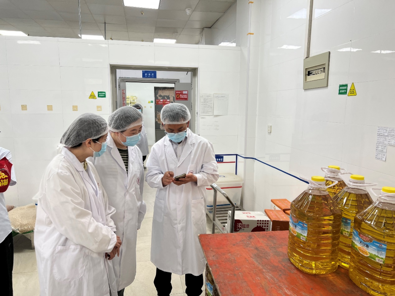 检查期间,领导小组以“全区域覆盖、全流程把控、全项目考核”为原则,力求消除食品安全隐患。在食堂,领导小组对后厨验货区、仓储区、粗加工、烹饪区、备餐间、餐具清洗消毒间、就餐等区域安全隐患进行认真排查;依托智慧监管系统,食材源头采购票据查验食材验收、储存、加工制作、成品留样餐具清洗消毒、环境卫生清理等各环节严格把关结合检查,对照清单,对食堂内部管理、伙食质量与价格、食品卫生与食品安全、服务与规范等方面进行综合评价考核。