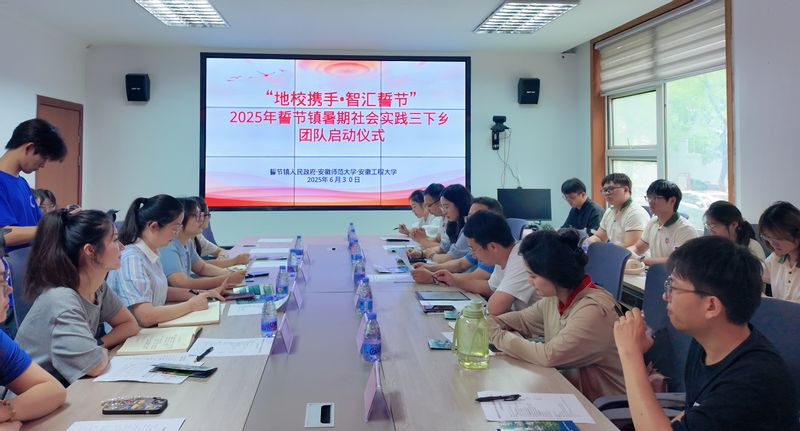本网讯 6月30日,生物与食品工程学院“不负‘食’光”“乡村振兴实践营”实践团队赴广德市誓节镇开展暑期“三下乡”社会实践活动。生物与食品工程学院党委副书记王彦青,誓节镇党委委员刘洁,团委书记郭鹏,团委副书记魏梦洁、沈雨婷,“不负‘食’光”团队指导老师及成员,安徽师范大学“誓语者”团队参加实践启动仪式。仪式由郭鹏主持。