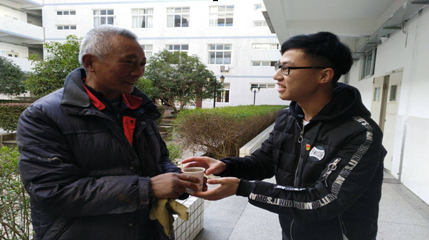宿管阿姨,门卫大叔和环卫工人虽然在我们校园里不是一个起眼人物,正因为他们每天在自己的岗位上为师生默默服务,辛勤付出,才有了我们和谐美好安全的校园环境。也许很少有人关注他们,也许很少有人真正地了解他们,但我们在校园里常常可以看见他们为我们忙碌的身影。经营学生支部党员分为三个党小组,每个党小组组长带领党员分别去门卫值班室,宿管阿姨和大叔值班室,去图书馆教学楼和马路边送温暖学校后勤人员。支部党员端去提前烧好的热水和水杯,给我们创造美好校园和安全校园辛勤工作的后勤工作人员现场端杯热水,交流谈心,对他们的默默付出表示感谢,关心他们的生活并和他们倾述了自己的大学学习和生活,后勤的阿姨和叔叔们很感动,表示今后会坚守岗位,继续不忘初心,为师生提供更优质高效的后勤保障服务,努力和学生一起营造平安和谐校园。