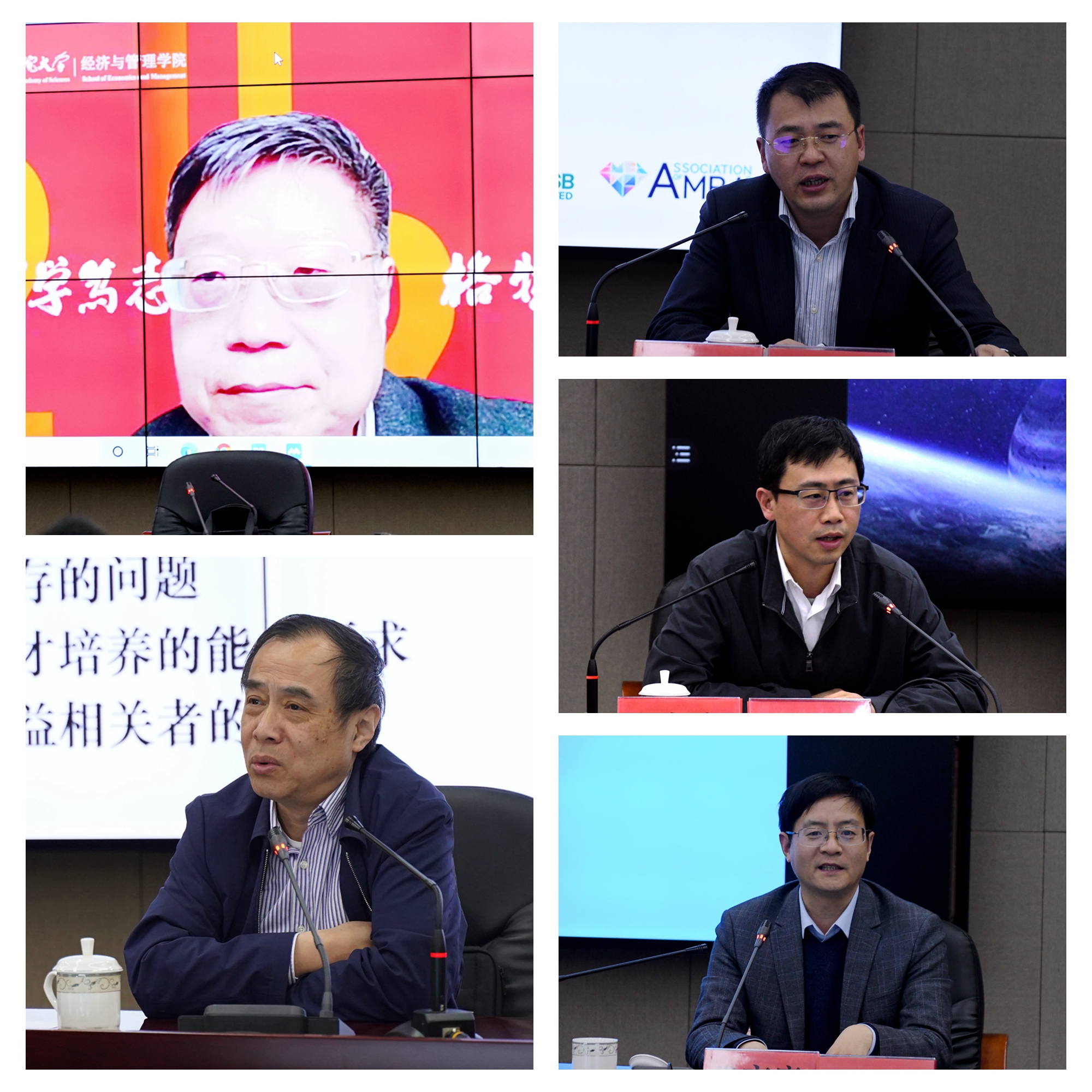 在主题发言阶段,杨善林院士以《数据科学与智慧管理》为题,在梳理大数据和人工智能发展的历史经验基础上,结合他带领科研团队针对国家重大需求取得的创新性成果,深入浅出地阐述了百年未有之大变局新经管高质量发展的具体内涵,指明了在新形势下的经管学科发展的方向和人才培养的重点。汪寿阳院士以《谈世纪大变局下中国经济管理学科发展的几个问题》为题,从全球供应链/价值链、美元霸权与人民币国际化、全球气候变化和全球性的经济危机等方面阐述了世纪大变局下对经济学和管理学的影响,强调在百年未有之大变局下经管学科的使命。李垣院长以《经管类高质量学科建设的思考》为题,从教育的供求结构、技术发展、市场竞争、制度变迁、不确定性风险加剧等外部变化,和现存问题、人才培养能力要求、利益相关者要求等内部驱动两个不同角度,剖析了新形势下提升经管学科建设质量的几个关键因素,并详细介绍了同济大学经管学科发展的指导思想和基本做法。闫相斌院长以《互联网+金融背景下的用户行为分析与管理》为题,介绍了互联网金融背景下,结合大数据技术,分析了在线金融平台间的投资行为、平台内投资行为和用户投资行为中的羊群效应,重点阐述了在线平台信息对用户投资行为的影响。胡笑旋院长以《天枢求解器卫星任务规划计算引擎》为题,在普及卫星任务规划的基本要求和特点的基础上,指出了数学规划求解器的重要意义,天枢求解器的研发解决了这个被国外企业长期垄断的 “卡脖子难题。巩在武院长以《兼顾收益与公平的闭环碳配额交易机制优化共识建模研究》为题,考虑市场交易机制的研究通过优化共识建模探索了有关灵活碳配额交易机制的理论创新问题,及考虑权重交互性的优化共识模型保证了个体自由进行权重交易问题。