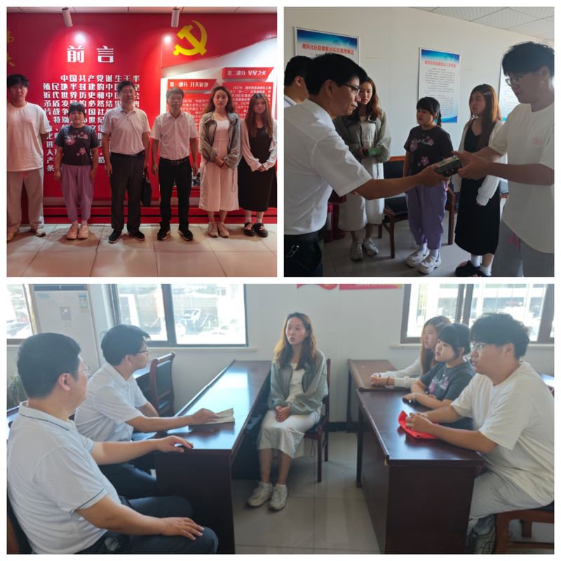 会上,水心宝赞扬同学们不惧酷暑炎热,克服困难,奉献青春力量。并带领同学们学习了《习近平与大学生朋友们》一书中“习近平同志提倡年轻人要‘自找苦吃’”相关文章节选,指出青年人要不怕吃苦,把艰苦环境、艰巨任务当作磨炼自己的机遇,在实践过程中注意理论联系实际,将书本上的知识与现实的情况有机结合,在奋斗中不断提升自己。同时,他勉励同学们在以后的人生路上要时刻提醒自己,坚持多学多干,多到艰苦的地方去锻炼自己,努力成长为有理想、敢担当、能吃苦、肯奋斗的新时代好青年。刘海涛鼓励同学们在实践项目训练中寻求收获,在困难磨炼中收获成长,在青春奉献中得到升华,以经风雨、见世面在全面建设社会主义现代化国家的火热实践中绽放绚丽之花。队长人力221班吴崇越同学代表实践团队向水心宝一行汇报了支教工作的开展情况,分享了队员们日常开展教学活动、支教帮扶、社会调研等方面的经历,团队成员向学院领导及老师的关心关爱表示感谢。座谈结束后,在社区工作人员的带领下,全体人员一同参观了社区的党史教育长廊。