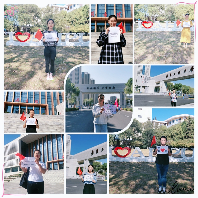 研究生支部各位党员充分发挥各自的聪明才智,采取手绘祝福祖国的标语与国旗合影,手持国旗和党旗打出“祝祖国繁荣昌盛”的主题标语与校园新媒体地标合影,畅谈祖国70年来伟大成就对自己的影响等形式来表达对于祖国70年华诞的祝福。