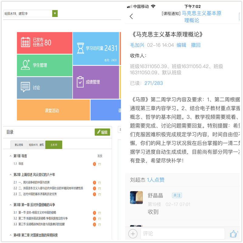 学院积极创新网络集体备课机制,发动全体教师群策群力收集素材,编制教学方案;各教研部以中国大学MOOC、学堂在线、超星尔雅、智慧树等平台为依托,精心挑选思政精品课程,共建共享线上教学资源。成立“安工程马院线上教学群”,为教师提供相关咨询服务,积极探讨破解线上教学难题,应对线上教学各种突发状况。