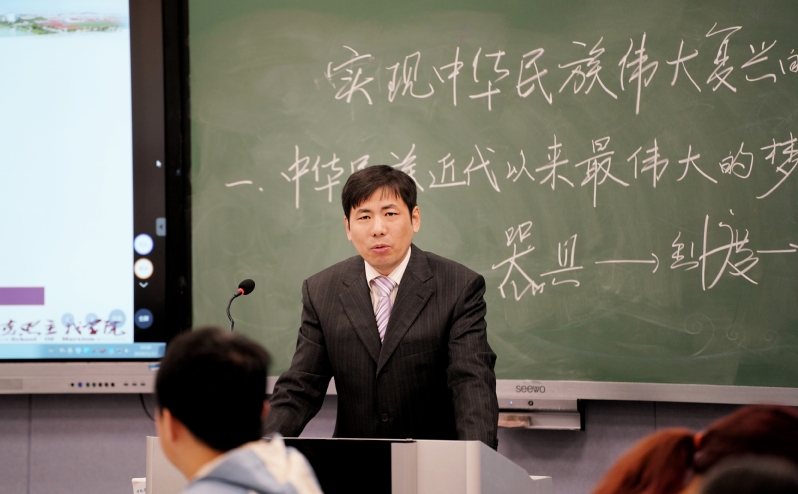 金承志博士选取了《毛泽东思想和中国特色社会主义理论体系概论》第九章第一节“实现中华民族伟大复兴的中国梦”的课程内容,他从历史维度梳理了中华民族近代以来所遭受的危机和中国人民为挽救民族危亡、实现民族独立和富强所进行的寻梦与追梦历程,从而证明“实现中华民族伟大复兴,就是中华民族近代以来最伟大的梦想”,并指明中国共产党的领导是历史和人民的必然选择。随后,他生动地解释了习近平总书记对近代中国人民寻梦、追梦、圆梦的历史进程的高度概括,“雄关漫漫真如铁”“人间正道是沧桑”“长风破浪会有时”。最后,他引导学生观看《我们走在大路上》的篇首视频,通过有趣的互动讨论,引导学生表达对“中国梦”的直观感受,后通过“词云”功能提炼“中国梦的科学内涵”,从而引入下一节课学习内容。整个教学过程层次分明、节奏紧凑、重难点突出,并且能够适当有效地运用信息化教学手段与学生进行互动,课堂气氛好,是一堂名副其实的思政“金”课。