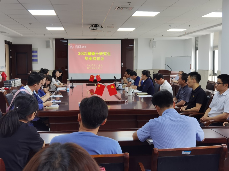 6月24日上午,马克思主义学院在1512会议室举行硕士研究生毕业欢送会。学院党政领导、导师代表、辅导员以及全体研究生欢聚一堂,真情话别。会议由副院长李海涛主持。