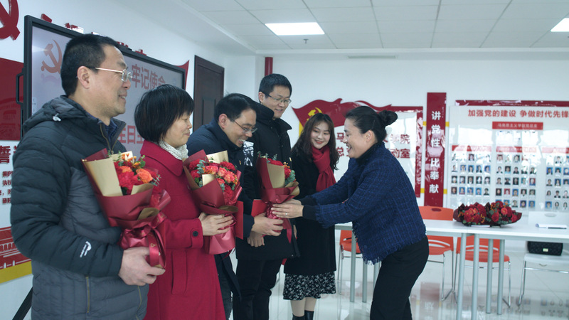 接到写着这样贺词的贺卡,捧着学院领导送上的鲜花,新入职不久的小杨老师激动不已。她说:“在中国共产党百年华诞之际,我以教师身份过上了政治生日,非常开心,无比光荣。在今后的工作中,我会时刻牢记党的宗旨,对党忠诚,永远跟党走!”同样难掩兴奋之情的还有政治生日同在12月份的党员教师徐东辉、孙前梅、张小峰、赵国锋。