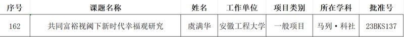 日前,全国哲学社会科学工作办公室公布2023年国家社科基金年度项目和青年项目立项结果,我院虞满华教授申报的课题《共同富裕视阈下新时代幸福观研究》成功获批国家社科基金一般项目。