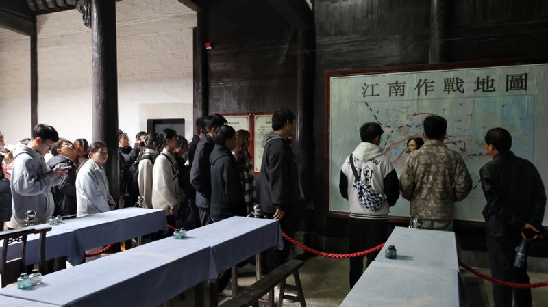 实践教学第二站:泾县云岭新四军军部旧址。这是全国首批重点文物单位、全国保存最完整的革命旧址群之一,也是中国近现代八大重要史迹之一。在讲解员的悉心讲解和带领下,学生们更好地了解了当时在叶挺、项英领导下,新四军将士活跃在大江南北,英勇抗敌,创建了众多抗日根据地等这一段历史。