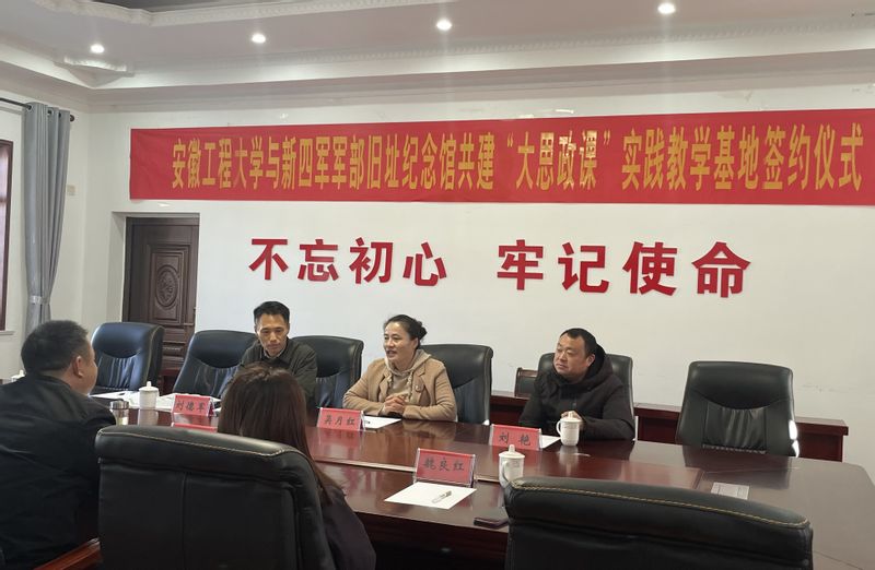 翟光云热烈欢迎吴月红一行来访签约,对与我校合作共建事宜表示高度认可与支持。他简要介绍了纪念馆建馆历史与日常工作开展情况,指出此次签约对拓展泾县地方特色红色资源进实践课堂、进学生头脑具有积极意义,表示在后续合作中将充分依托纪念馆长期从事新四军革命文化史料研究优势,统筹馆内物质与非物质资源为我校“大思政课”建设及实践课程开发提供有力服务。他也表示,感谢我校为馆内学者、讲解员等人员提供兼职思政课教师的机会,表示将用好合作共建平台,积极鼓励馆内人员赴我校学习及参与集体备课等活动,不断拓展他们的知识面与专业素养,从而提升纪念馆整体宣讲与研究水平。
