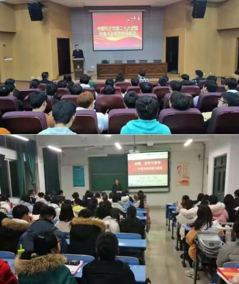 支部教师认真落实思政课是落实立德树人根本任务的关键课程,坚持站稳思政课课堂。同时,支部成员全部为学院“求是讲堂”理论宣讲团成员,课上课下积极传播党的好声音,不断推动青年学生“正”起来,取得一定影响。