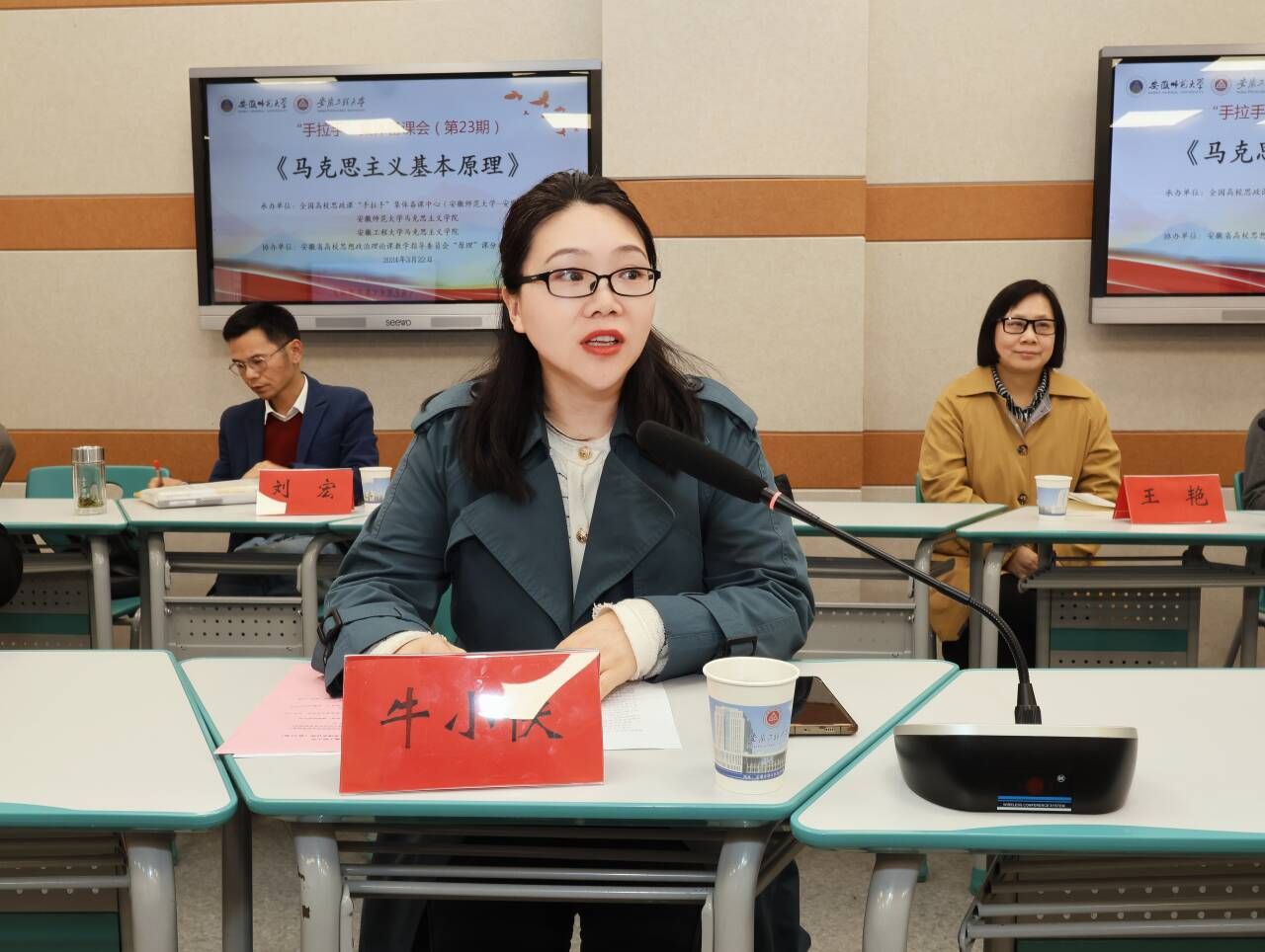 在微课展示环节,安徽师范大学的张添翼和王子廓分别围绕“哲学的基本问题”“矛盾的普遍性与特殊性及其相互关系”进行了交流展示。日韩欧美福利视频_黑人巨大人精品欧美三区_欧美成人另类人妖_欧美在线精品一区二区三区_欧美一区二区三区性视频_日韩精品欧美视频_性欧美极品xxxx欧美一区二区的张刚、毛加兴分别围绕“价值及其评价”“矛盾的对立统一”进行了教学分享。四位教师的教学展示准备充分、思路清晰、重点突出、教态自然、各具风格,充分体现了以学生为中心、以问题为导向的教学理念,诠释了“原理”课教学重在说理的独特魅力。在交流环节,干成俊、余在海、张涛、王艳、刘宏、凌取智、张小峰、刘菲菲等参会老师逐一做了交流发言。牛小侠高度肯定了四位老师的教学基本功,指出原理教学关键是把“理”讲准、讲透、讲实。干成俊指出,讲原理既要面对当下热点问题,也要回到经典作家的历史语境。余在海认为,在原理教学中,要回到教材、吃透教材,要能像剥洋葱那样讲清楚知识点的内在逻辑,要勇于突破教材中重难点。张涛指出,在教学中要处理好原理与原著的关系、教材体系与教学体系的关系、备教材与备学生的关系。老师们还就实践教学、课题申报、论文发表等其他问题进行了深入交流。