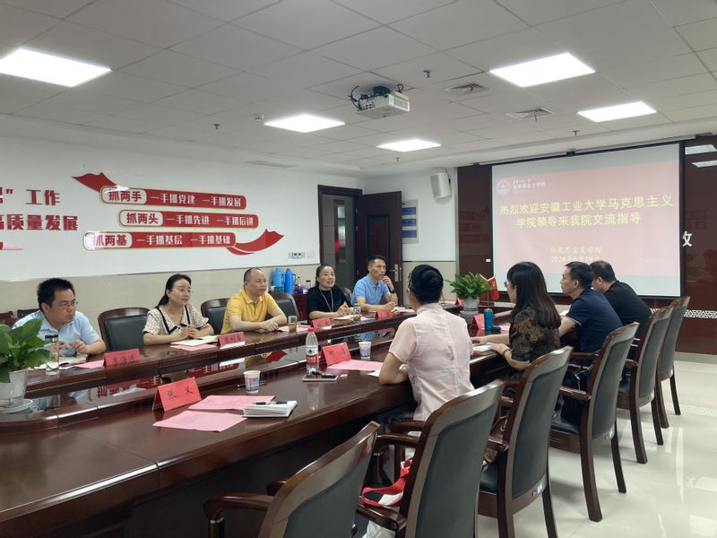 刘伟代表学院对安徽工业大学马克思主义学院一行来访表示欢迎,并围绕基层党组织建设、落实“三抓”工作等方面介绍了学院党建相关工作。吴月红从学院组织机构、师资队伍建设、省重点马克思主义学院建设等方面介绍了学院的概况。刘德军和李海涛分别介绍了学院思政课教学改革、学科与科研平台建设等情况。与会人员围绕基层教学组织建设、青年教师培养、一流课程申报、过程化考核、实验室建设、“四史”课程开设、“形势与政策课”教学管理等思政课建设问题以及学科、科研平台建设问题进行了深入交流和探讨。