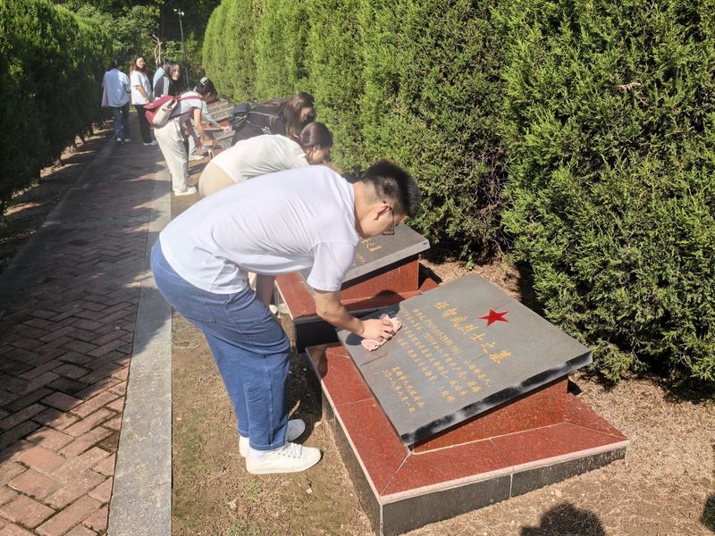 同学们首先来到纪念碑前,肃立默哀,深切缅怀革命烈士。接着,大家来到烈士事迹纪念馆,在本学院研究生志愿者讲解员的深情讲解下,同学们了解了众多革命先烈的感人故事,深刻领悟他们的坚定信念和无私奉献的精神,充分感受芜湖的红色文化。最后,同学们手持抹布来到烈士墓区,轻轻擦拭每一个墓碑。这不仅是对先烈们的致敬缅怀,更是一种庄严的承诺,传承先烈的精神,努力成为对社会有用的新时代青年。