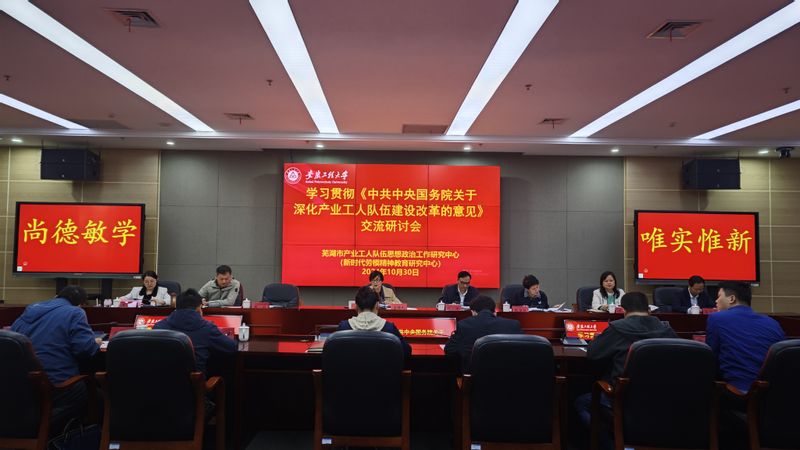 为深入学习贯彻党的二十届三中全会精神,认真学习贯彻《中共中央国务院关于深化产业工人队伍建设改革的意见》,10月30日下午,芜湖市产业工人队伍思想政治工作研究中心(以下简称“研究中心”)在图书馆201会议室召开学习贯彻《中共中央国务院关于深化产业工人队伍建设改革的意见》(以下简称“《意见》”)交流研讨会。研究中心管委会主任苏国红教授出席会议,校宣传部、科技处、工会以及人文学院、经济与管理学院、体育学院、继续教育学院等部门负责人,马克思主义学院班子成员和研究中心成员参加会议。会议由苏国红主持。