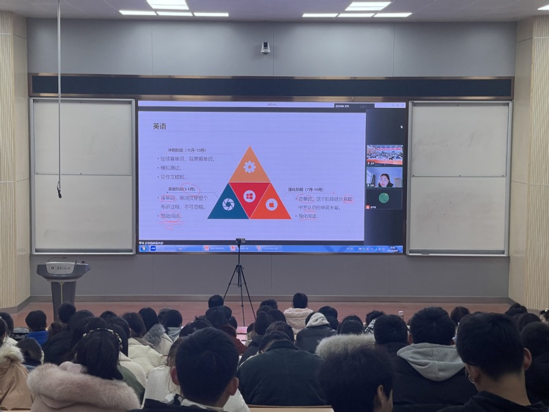 12月17日下午,数理与金融学院在二教报告厅举办考研动员大会。学院党委副书记、纪委书记王燕、副院长吴小太、19级辅导员程安琪参加会议,为大三年级同学分析考研形势、分享考研方法,鼓励同学们理性选择、务实规划,备战考研。
