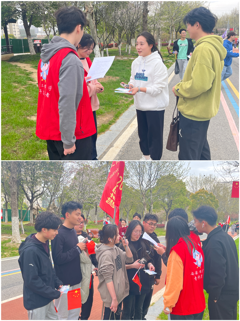 踏着明媚春光,在微风习习中,伴随着《青春万岁》荡气回肠的朗诵声,健步走活动在雕塑公园阳光草坪正式开启。本次行走路线为雕塑公园主赛道一圈,累积健步走里程达5公里。沿路共设置“正”起来、“学”起来、“壮”起来、“乐”起来、“勤”起来、“和”起来六个打卡点,在打卡点不仅能参加趣味活动还可以获得满满能量补给,率先达到终点的前50名同学可获得精美礼品。