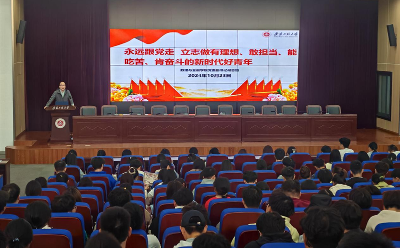 10月23日,数理与金融学院分党校在图书馆五楼会议室举行第三十五期入党积极分子培训班开班典礼暨新生入党启蒙第一课。校党校督导组成员刘宝玉、学院党委副书记何志恒、培训班班主任、全体学员和2024级全体新生参加开班典礼。