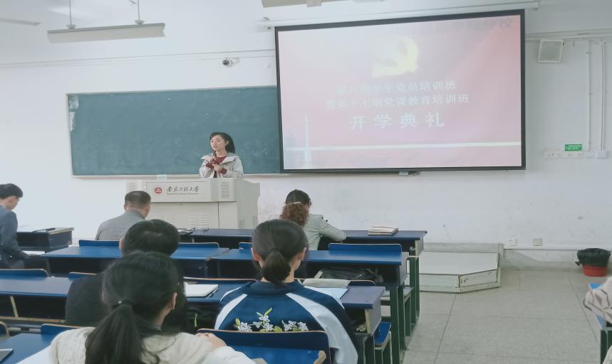 开班典礼在激昂的国歌声中开始。刘云云首先就本次分别面向预备党员和入党积极分子的党课培训班整体情况做了简单介绍。张君宣读了学院党委关于本次党课教育培训班的文件。王钰介绍了本次培训班的班委会组成和学员名单,共有16名预备党员(包括14名学生党员和2名教师党员)53名学生入党积极分子(本科生51名、研究生2名)参加本次培训。