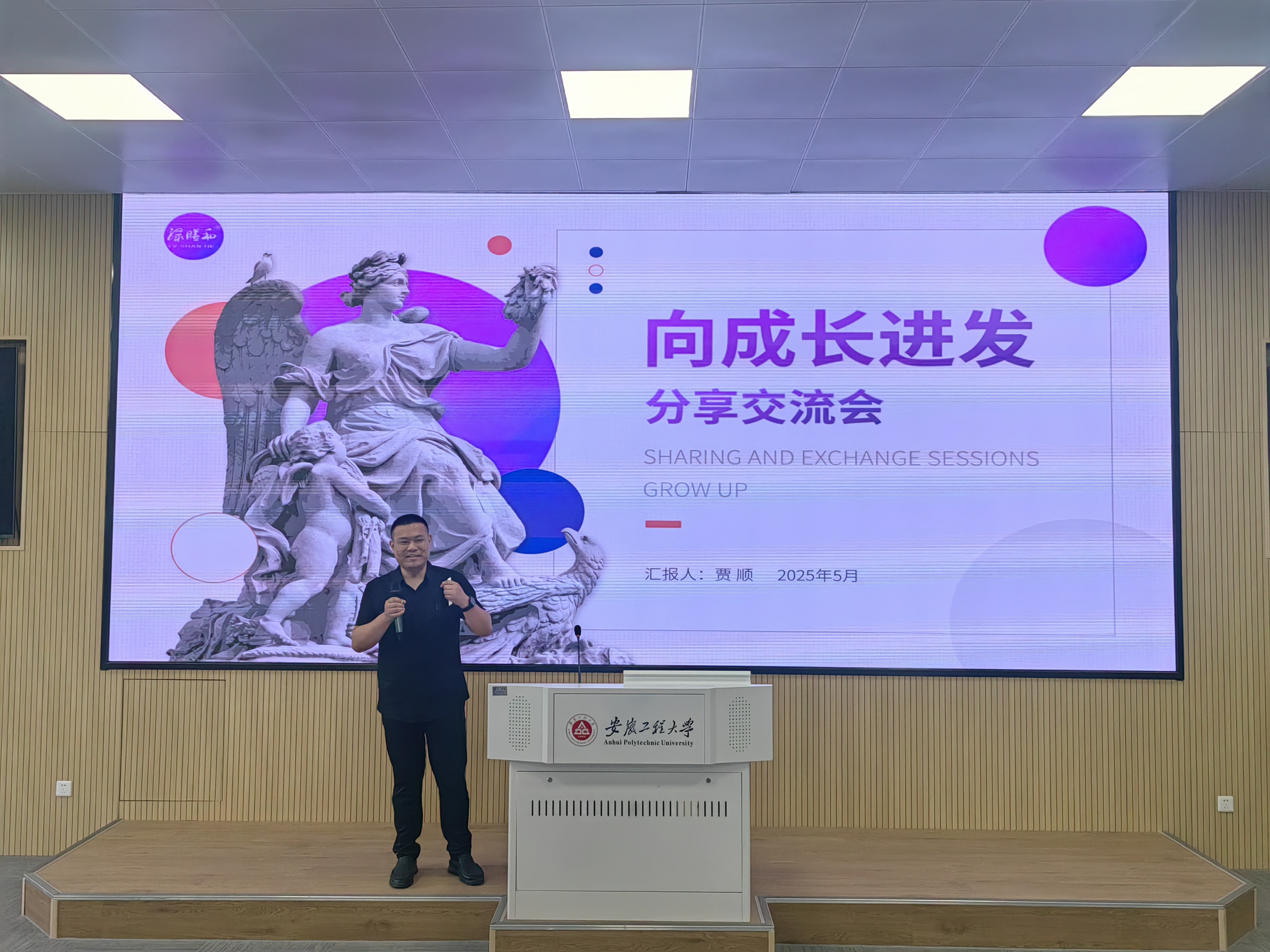 仪式结束后,贾顺作为设计学院优秀校友代表,以“向成长进发分享交流会”为题开展讲座。他结合自身经历,从行业趋势、职业规划、能力培养三个维度为学子指点迷津,现场互动热烈。